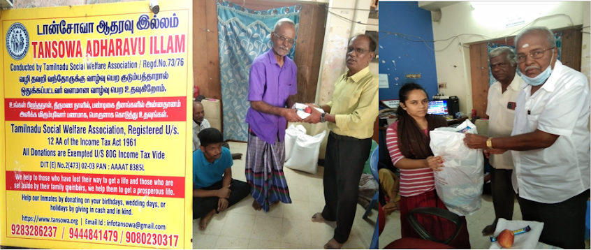 அதன் இறுதி நிகழ்ச்சியாக 23.10.2022 இன்று காலை 11.00 மணி அளவில் டான்சோவா ஆதரவு இல்லம் சென்று அங்கு உள்ளவர்களுக்கு வேஷ்டி லுங்கி புடவைகள் நைட்டி பழங்கள் போன்ற பொருட்கள் நமது மாநில சங்கத்தின் சார்பாக வழங்கப்பட்டுள்ளது என்பதை மகிழ்ச்சியோடு தெரிவித்துக் கொள்கின்றோம். நிகழ்ச்சியில் மாநில சங்க தலைவர் தோழர் M.முனுசாமி அவரது துணைவியார் மாநில பொருளாளர் தோழர் M.கண்ணப்பன் மாநில அமைப்பு செயலாளர் தோழர் B.பக்தவச்சலம் மாநில ஆடிட்டர் தோழர் B.மஞ்சுநாத் மற்றும் அண்ணாநகர் கிளை செயலாளர் தோழர். V.N.சம்பத்குமார் ஆகியோர் கலந்துகொண்டு சிறப்பித்தார்கள்.